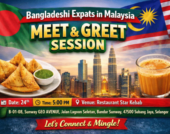 We’re excited to announce a Meet & Greet session for our Bangladeshi expat community in Malaysia! This is a great opportunity to connect, network, and spend quality time with fellow Bangladeshis in a friendly, relaxed environment. Date: 24th Time: 5:00…